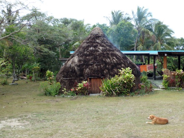 Where the road to Jinek Bay branches, the left fork leads to the church and the right to the bay. We saw more of the mainly black and white butterflies and some yellow ones on the way to the church. Also a lot of them up by the church. There was a dog sleeping on one of the overlook platforms at this church, and we saw a couple on the porch of the church by the cave as well. I guess the dogs of Lifou like to go to church.