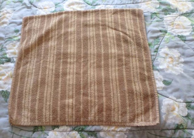 Fold the short ends of one hand towel over evenly on both sides to make a square.