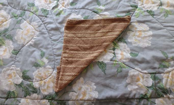 fold the towel in half diagonally making a triangle