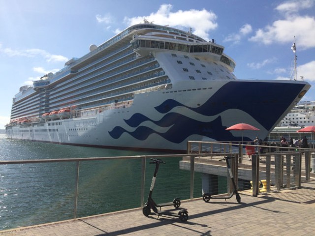 Royal Princess arrived in San Diego around 4am, though the scheduled arrival time was 7am. That gave the crew plenty of time to set up gangways on two different decks long before most of the passengers woke up. The morning started out foggy, but the day turned sunny by late morning as the fog burned off.