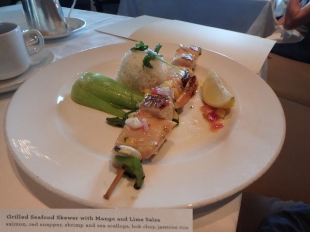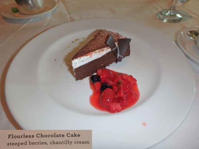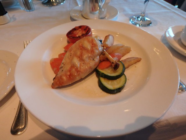 There’s usually something gluten free available on the standard menu at least on the first night. After that the waitstaff brings the next night’s menus to the table so your choices can be altered as necessary to fit your diet. This works fine for people with sensitivities to particular foods. If your restrictions are severe such as celiac disease or life-threatening peanut allergies, you would definitely want to make arrangements in advance of the cruise and meet with the maître d’ before dinner time on boarding day.