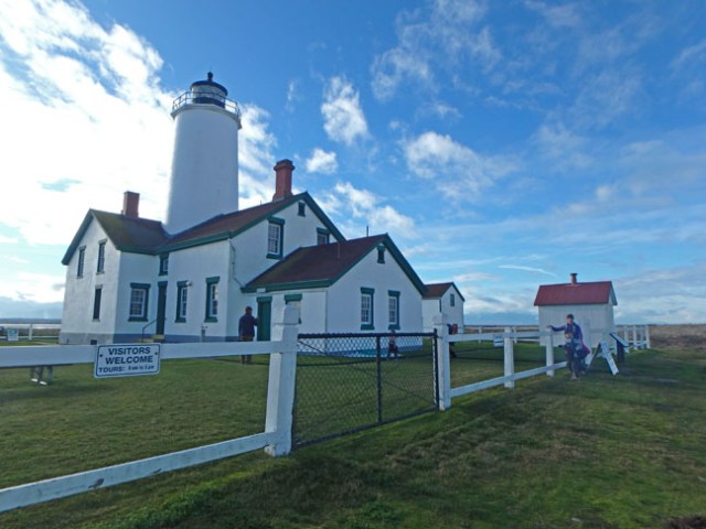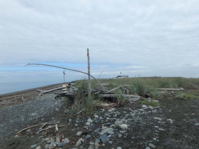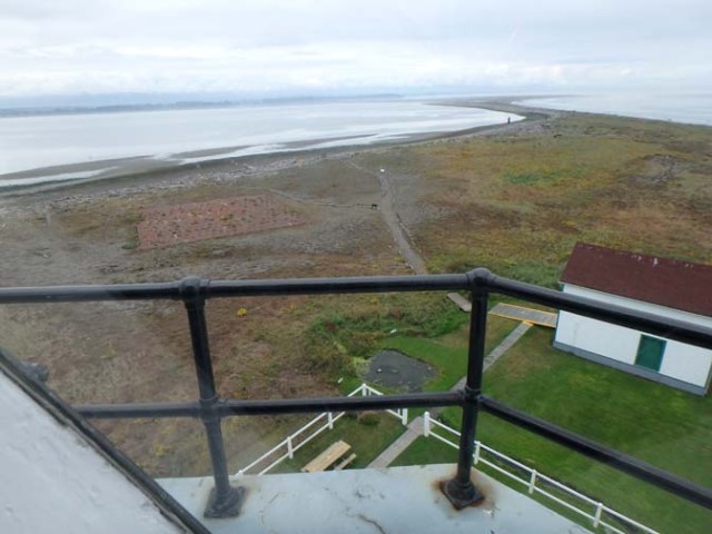 lighthouse and keeper’s house taken from the farthest point people are allowed to go out the spit on a little trail that goes a short distance beyond the lighthouse and has some historic signs. Most of the spit beyond the lighthouse is wildlife reserve and off limits to people.