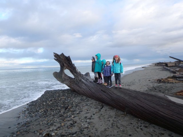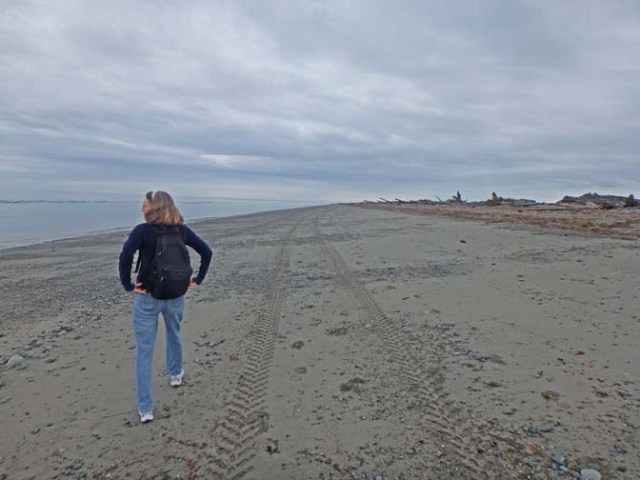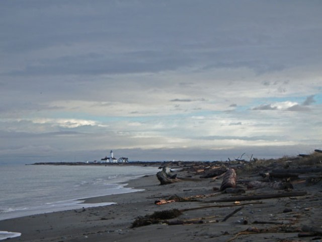 The spit has no shade or shelter so a clear winter’s day is good for a hike out there since there are no worries about it getting too hot. Tides are generally lower in the summer though, so hikers usually have more beach to walk on then. In summertime cloudy days are a good choice for a spit hike. Time of day when the lowest tide occurs varies greatly so consulting a tide chart and planning ahead for a trek during low tide means more beach to walk on and less likelihood of having to scramble over logs.