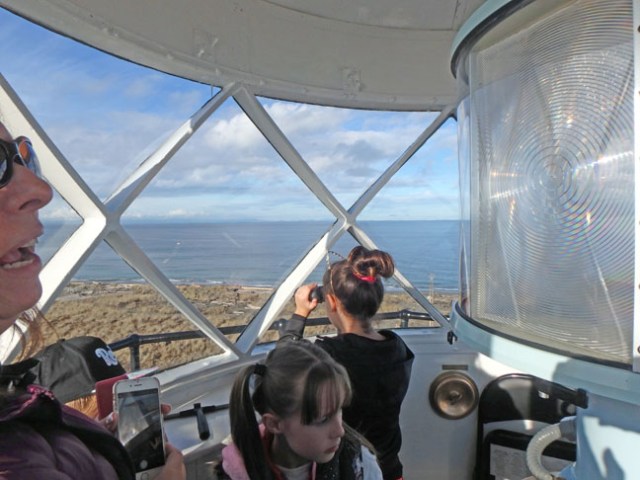 There is a small boat landing on the beach on the estuary side so there are some visitors who come by sea on a small boat or kayak rather than by land, though they do have to arrange in advance to come in by boat. Lighthouse keepers are given transport in a 4×4 vehicle at low tide, which is good for them since they have to bring their own food with them as well as clothes and things since there are no stores on the spit. There is an artesian well next to the lighthouse which supplies both the keeper’s house and lighthouse building with water. In the early days before the well water had to be collected when it rained. Lighthouse keeping was hard work, especially on foggy days when keepers had to shovel coal to run a steam powered foghorn. The first light ran on lard oil. Electricity came by underwater cable across the bay in the 1930’s, but the light was not automated until 1976.