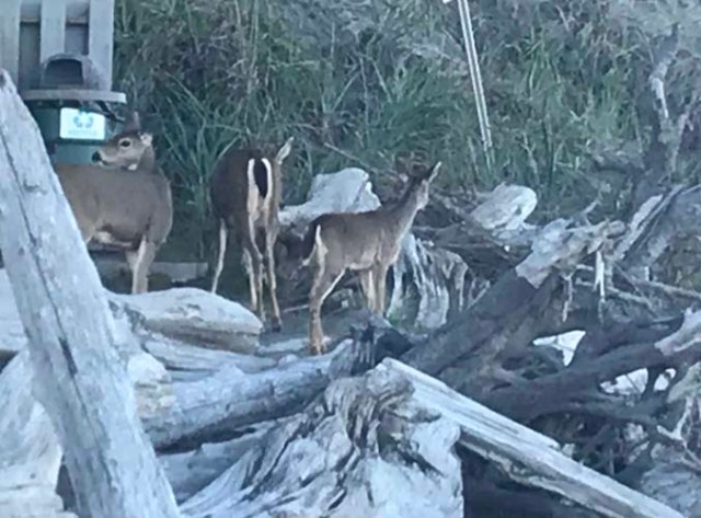 On the trip out with my sister, my Garmin watch lied and said we made it to the lighthouse in under 2 hours when it really took 2 1/2. We were sightseeing, stopping for photos, and not caring about the time. Not wanting my PB (personal best) for that trek to be a lie, I jogged out there alone one October day with favorable tides and weather intending to be faster than the false time and made the trip in less than one hour, and just over an hour for the way back. Where the trail down from the trailhead meets the beach I saw 3 deer walking down the trail and 3 more on the beach on my way back that day. Most people hiking out to the lighthouse for fun would expect to take at least 2 hours each way for the full trip including the woods, but runners have made it there in slightly less than half an hour (beach time only, not counting the woods trail. The beach part of my jog took a hair under 45 minutes.)