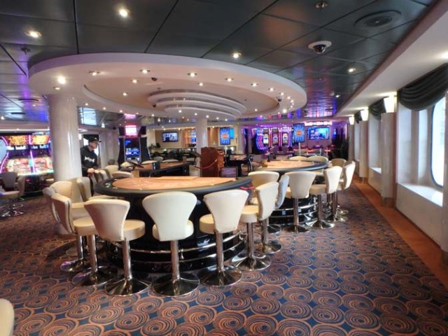 Working in the casino would be a boring job on the Lirica, at least during our cruise anyway. It’s pretty small with just a few table games and slot machines, no poker or craps. Generally there was nobody at any of the table games other than late at night and maybe 2 or 3 people at the slots. The shops were often empty of customers as well.