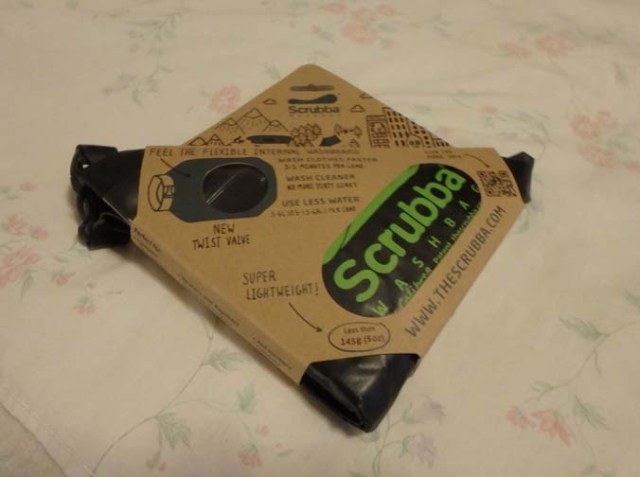 The Scrubba wash bag is an Australian invention – a portable washing machine for people on the go. It’s easy to use. Just put your dirty clothes into the bag along with water and soap intended for handwashing clothes. Then close off the end and squeeze the air out and rub your clothes on the built-in washboard. Empty out the wash water, put in rinse water and rinse them, then hang to dry.