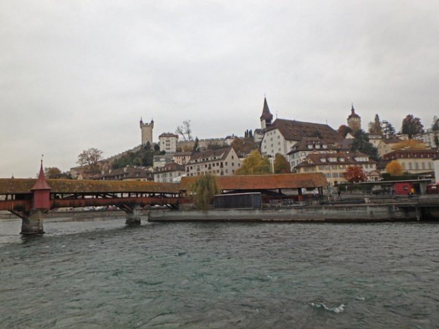 Lucerne, a postcard perfect city known for its medieval architecture, sits on Lake Lucerne surrounded by the snowcapped peaks of Switzerland’s Alps. It is the most populated town in central Switzerland and served by a network of public transportation including trains and busses. People have lived there since long before medieval times. Its colorful Altstadt (old town) is bordered on the north by 14th century ramparts and remnants of the old town walls with 8 watch towers.