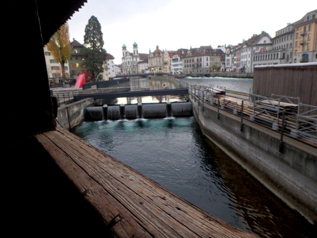 covered, and the closest was the Mill bridge – the one with a series of plague paintings in the rafters and a tiny chapel partway across. We actually crossed that one a couple times the first night we were wandering around there without even noticing the paintings in the rafters in the dark.