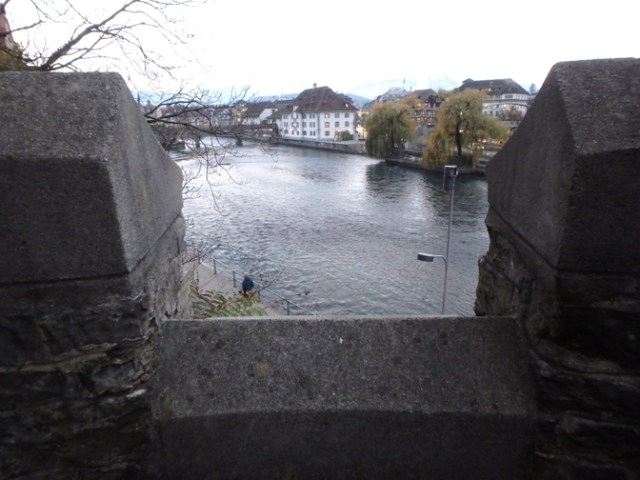All we had to do to get to the river was walk through a tunnel passing through the building we were staying in. The train station was less than a kilometer upstream, and there were buildings, shops, restaurants and bridges in both directions and on both sides of the river.