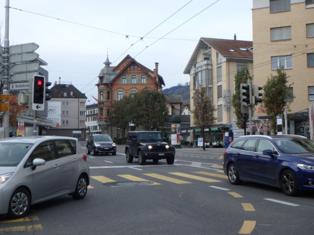 The taxi went a round about way, perhaps due to one way streets, or to their GPS, or maybe just to have a longer drive so he’d make more money. Anyway the distance he drove made it seem way too far to ever consider walking back to the train station from there. Everything online spelled the name of the guest house as Roesli, but the name painted on the building wall said Rosli. The door to the guest house had a sign saying to check in at a nearby hotel, and the lady at the desk there said it was a 10-minute walk along the pathway by the river to the train station. Just about everyone we came across in Switzerland spoke English, which was a good thing since we speak no German. The next day we found that 10 minutes was a long estimate as we walked to the train station in half that. Too bad Google maps had never pointed us toward the river the previous day.
