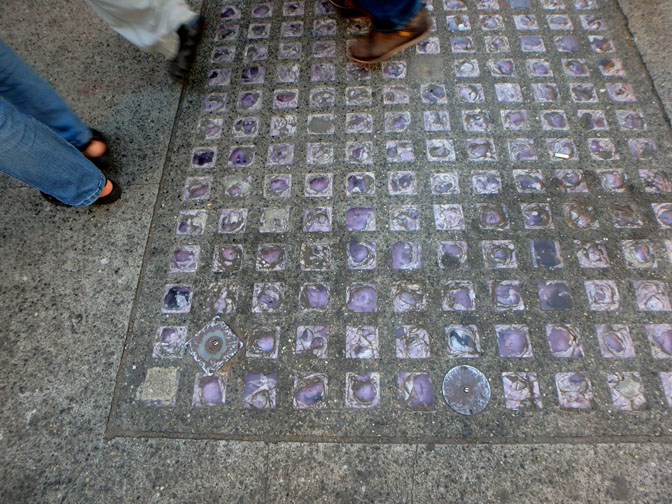 little glass squares in Seattle sidewalks indicate the underground is below