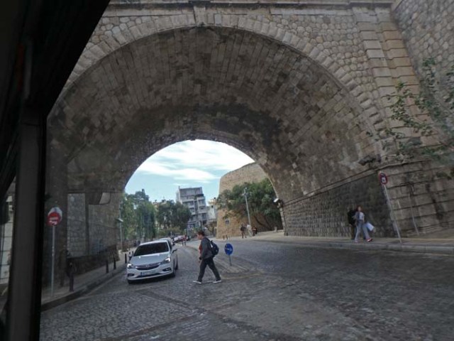 Along the way you can see part of the old Venetian walls across the street, and a couple of its tunnel-like gates. These walls were built during the time Crete was under the control of the Venetian Republic. Beyond the marked walkway on the roadway next to the sea we saw some small ruins.