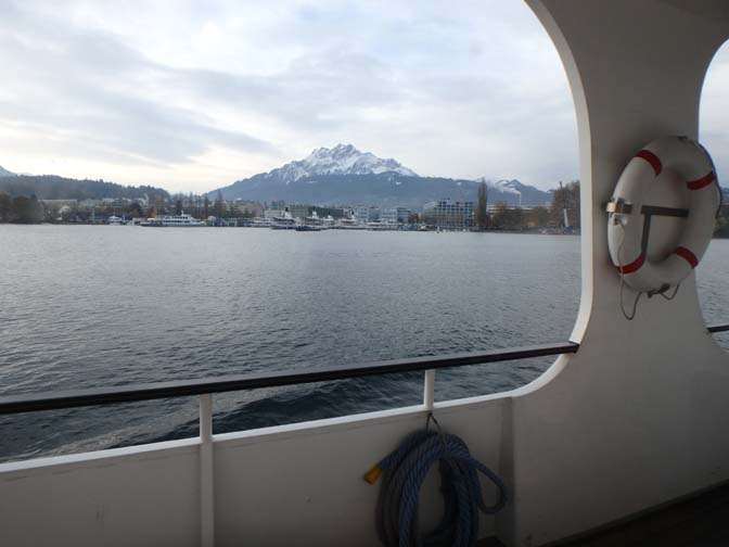view of Mt Pilatus from a boat on Lake Lucerne in Switzerland