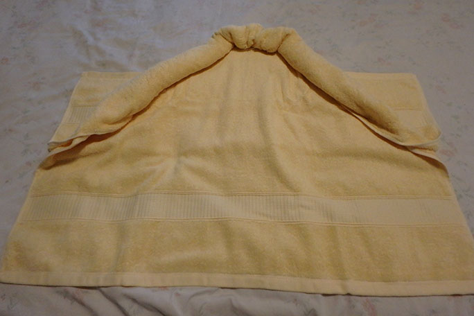 making a towel into a shark