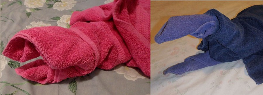 tuck the tail into the shark body and tuck any excess body towel underneath or wrap the ends of the body towel around the middle of the tail and then tuck the tip of each bit of excess towel into the other side