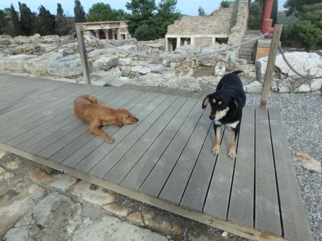 We saw several stray dogs wandering about the ruins when we were there. None were aggressive and they all looked in reasonably good condition so either they find enough to eat or someone feeds them.
