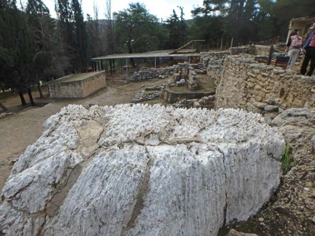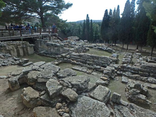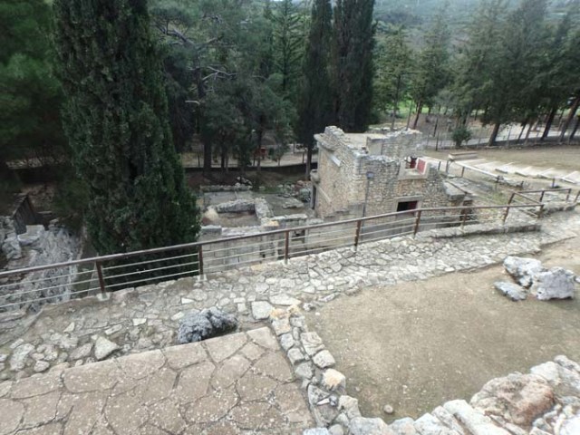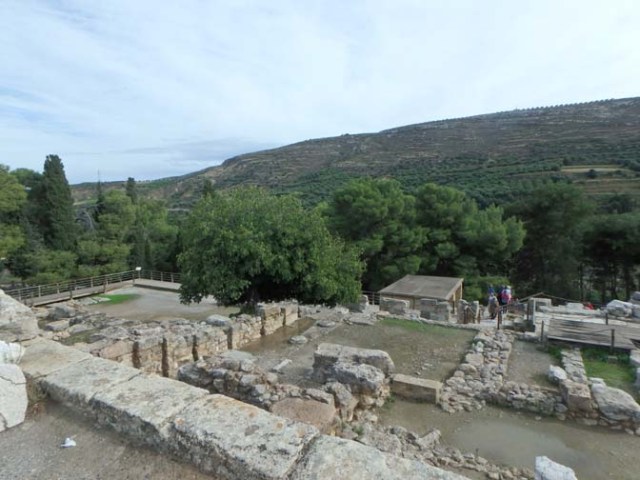 The hillside above the ruins is lined with what looks like ancient stone walls so the original city may have extended well beyond the area occupied by the later palaces.