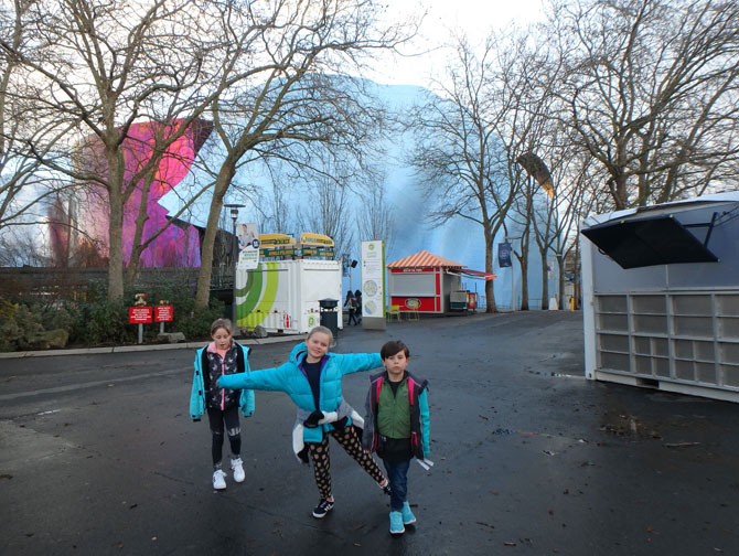 Hannah, Chloe, and Daniel posing with MOPOP in the background