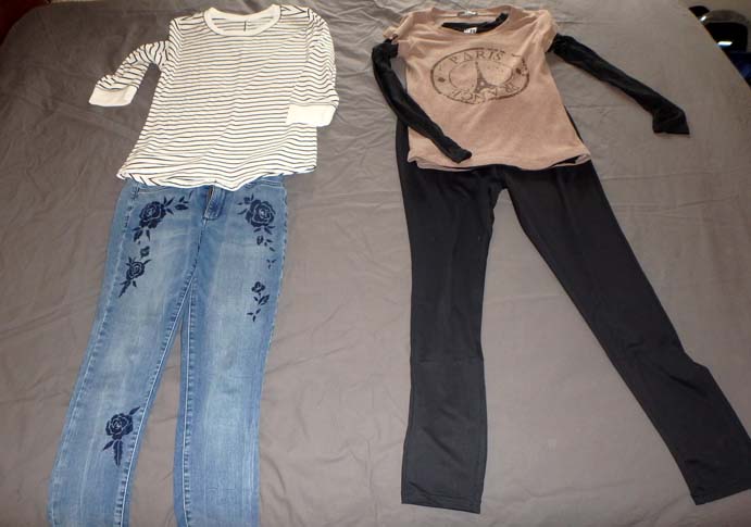 a t-shirt turns into a long-sleeved shirt with long johns, and the formal night shirt turns casual paired with jeans while the pants go casual with the t-shirt