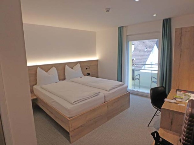 The hotel was either fairly new or recently remodeled. The rooms were very clean with modern decor. It had more outlets than the older hotels we had been in so far, and better lighting, but still no USB ports. The room had a big very modern bathroom and beds with the same sort of individual sleeping bag style sheet/quilt combo the Swiss places had. There was a desk, closet, and luggage rack. There were a bath towel and hand towel for each person, but even this nicer hotel had no washcloths. I don’t know what Europeans have against washcloths. They are quite useful when you want to get clean after all. There was just some sort of all-in-one soap, shampoo, and bodywash combo in the shower so it was a good thing I had some individual toiletries of my own. My hair would have the feel and consistency of straw if I used that sort of combo product on it. The hotel had free wifi of a faster speed than some of the other places we stayed. Unlike most hotels in Europe, this one had free breakfast. While common in American hotels, this was the first time we found it anywhere we’ve been in Europe, though our next hotel in Innsbruck, Austria had a nice free breakfast buffet too. This was before Covid so they may not have it any more.