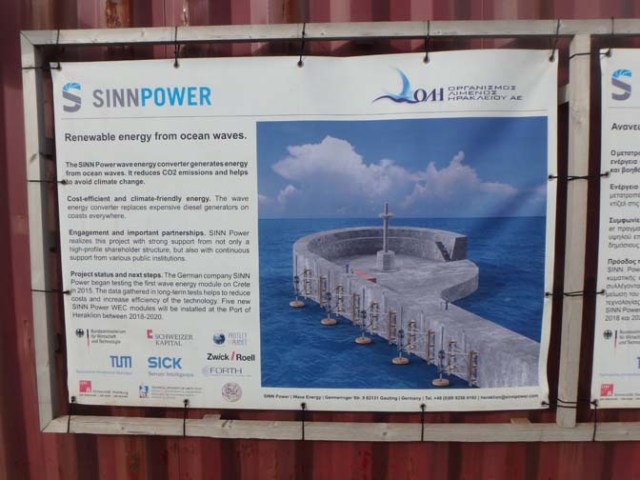 Down on the main level, what looks like a dumpster on the end as you approach from the pathway has information on the longer front side explaining about the wave generation power project, which is what the moving metal pipes are so going to the end to see the lighthouse is rewarded by something else interesting and different. The power project is a prototype from a German company.