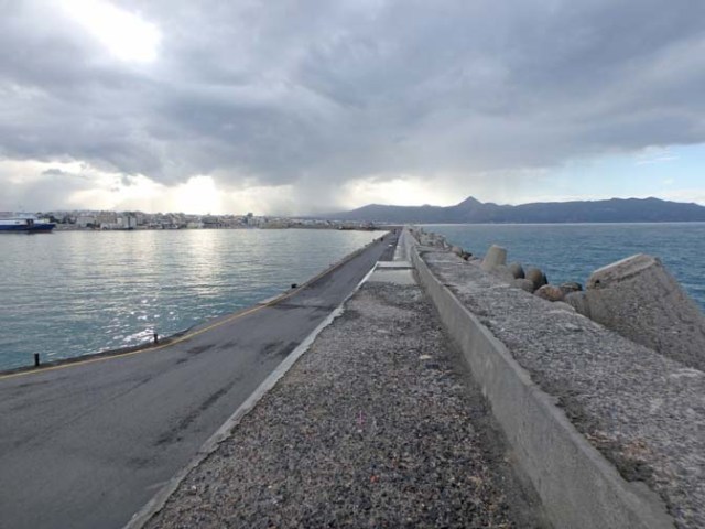 Beyond the castle a seawall extends about a couple kilometers to a lighthouse. It’s a breakwater for the harbor, but also seemed to be a popular place for locals to jog or ride bikes. We even saw one guy fishing along the edge.