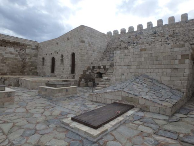 The fortress was built in the early 1500’s during the Venetian rule of Crete when the appearance of gunpowder in Europe made the previous tower guarding the harbor entrance obsolete. The original tower was demolished and boats full of rocks were sunk as landfill to form the platform on which the fort was built. Besides cannons, the 26-room fort had space for munitions storage, soldiers quarters, and accommodations for officers and the governor. It had its own mill and oven.