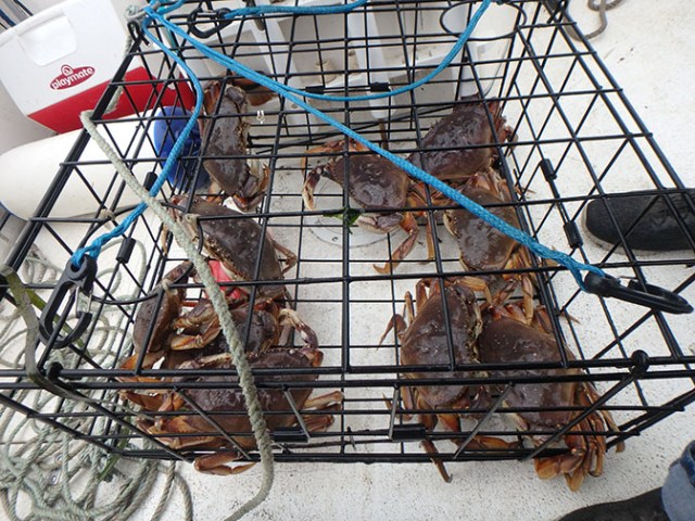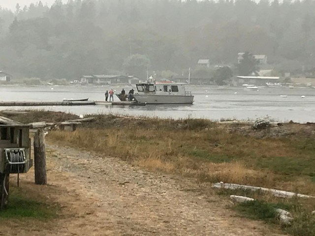 Traveling from the Strait of Juan de Fuca where we launched out to the San Juan Islands, you are never all that far from land. In normal times it’s a lovely view with water, islands, and mountains in the background. On this trip it was like we were in a little gray bubble. We could see the water immediately surrounding the boat and usually some sea birds, but other than the surrounding haze that was it unless there was an island very close. Traveling along in that lonely isolated bubble a couple old songs came to mind. Smoke on the Water and Your Eyes Have the Mist from the Smoke of a Distant Fire. Navigating by sight was impossible, but the boat is equipped with electronics. On the way home it was even worse with the bubble of sight pretty much limited to the boat itself and the occasional seabird scared up off the water for a good part of the way home even though it had been fairly clear with visibility across the bay near the cabin on the day we left. We had to keep a constant watch for other boats. We crossed several wakes without ever seeing the boat that left them and then came suddenly upon a boat sitting still pulling crab pots and had to make a quick turn to avoid hitting it.