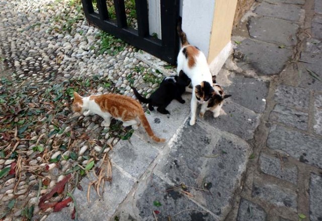 A few cats wear collars, those belonging to locals, but most are strays. The majority of them were in better condition than a scrawny dog that wandered by, and it had a collar on. We also saw some stray dogs, who generally looked better than the one with the collar. Way more cats than dogs though.