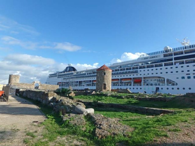 MSC Lirica in Rhodes, Greece – there are some ruins and a seawalk right at the port