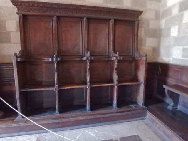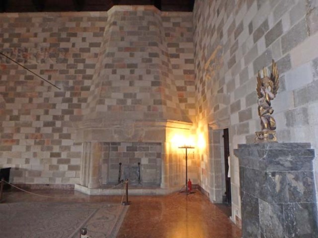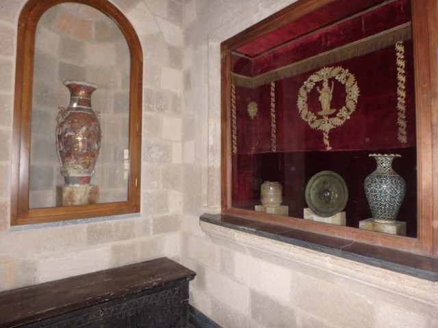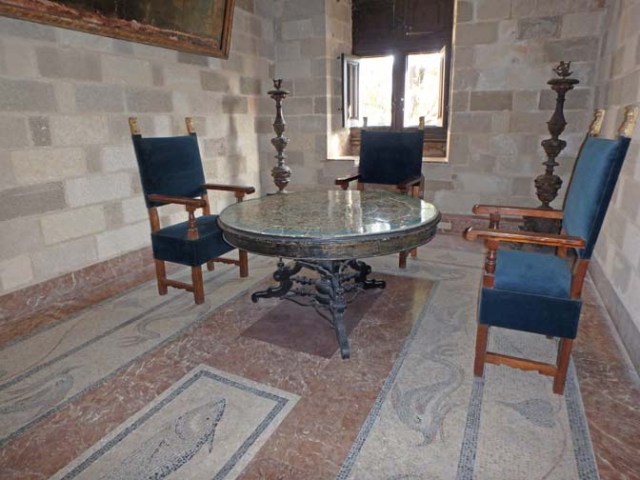 An ammunitions explosion in 1856 damaged the lower level and destroyed many of the first floor rooms. It was restored between 1937-1940 when Rhodes was under Italian rule and the castle was used as a holiday residence first for the King of Italy and then for dictator Benito Mussolini, whose name is on a large plaque near the entrance.