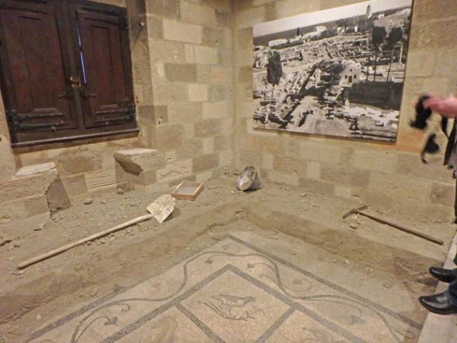 While the castle was well above ground and in good shape, one room was partly full of dirt with wheelbarrows and signs about excavating, with no explanation of why that would have been necessary. Possibly because some of the mosaics are not original to the castle, but were excavated on another island called Kos. Only 24 of the castle’s more than 150 rooms are open to the public.