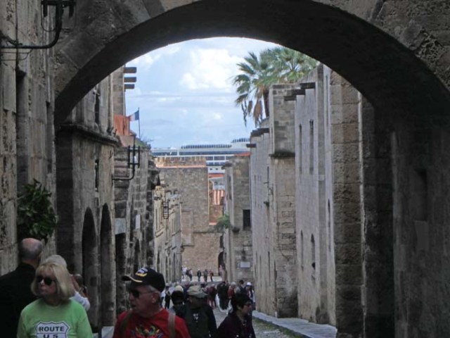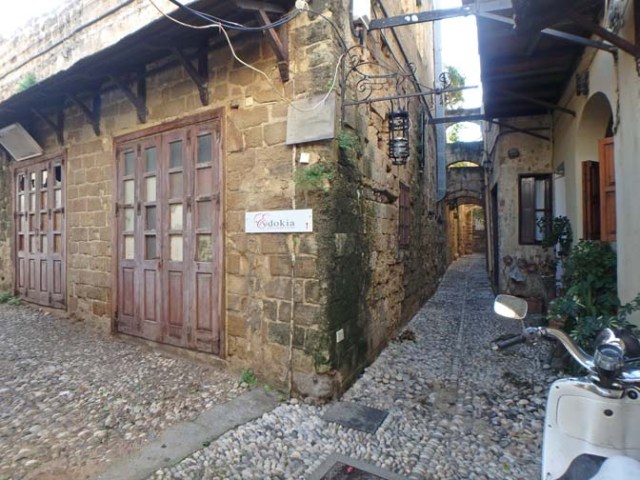 Old town Rhodes is the oldest occupied medieval town in Europe. Current residents live in the same buildings where people lived in medieval times.  Quaint streets and alleys are interspersed with homes and businesses in these ancient buildings. Some of the smaller streets are made from small rocks rather than bricks or flat paving stones.