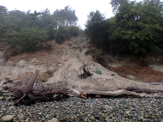 In areas where the cliffs above the beach are made of dirt instead of rock weather and tides may cause landslides.