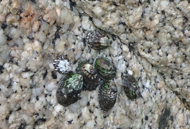 limpets on a rock at low tide