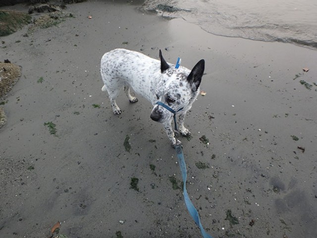 Piper on the beach at Decatur Island