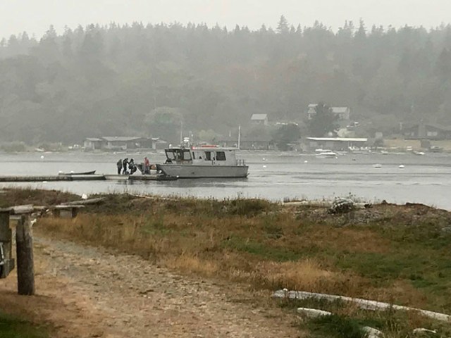 Island charter picking up passengers on Decatur Island