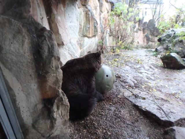 The zoo is not right at the Aplenzoo stop. You have to take stairs or an elevator down to a little road and then walk kind of around a corner and up a hill. There were a couple of small signs pointing out the way. The road split into one going down and around a corner and one continuing up toward a bus stop – which happened to have a bus sitting in it when we got there. There was no sign saying which way to go so we went up toward the bus.