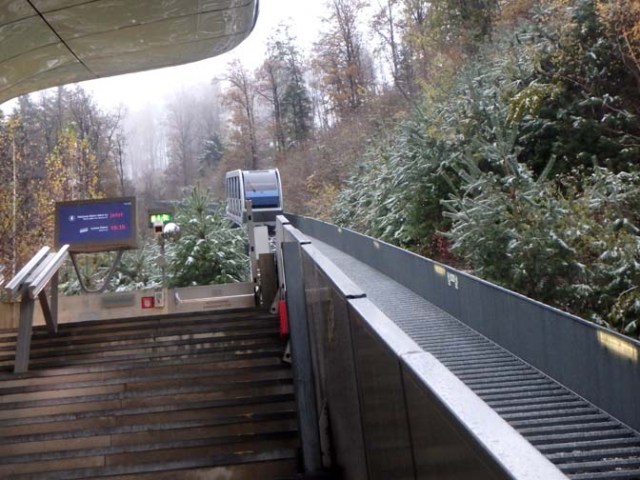 package that included all the way to the top of the mountain plus the zoo. Getting to the top takes two separate aerial cableways beyond the funicular’s highest station. It was raining at the lower elevations and snowing higher up the day we went there. We didn’t want to be soaking wet everywhere not covered by our raingear when we got to the top where it’s really cold so we did the zoo on the way back down. The funicular makes a stop for the zoo partway up (or down) the mountain.
