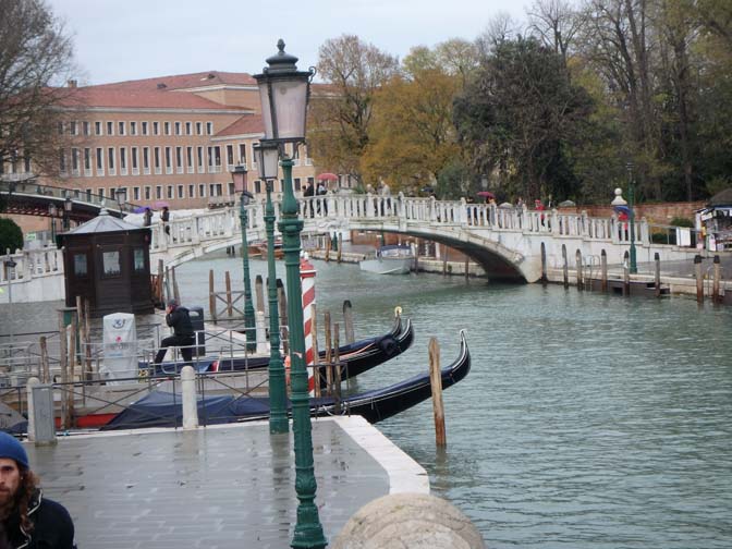 gondolas docked near a bridge