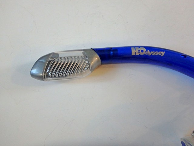 I have a dry snorkel, which means water can’t get into it. That comes in quite handy in choppy water as none splashes into the tube like it can with the open tube sort of snorkel preventing any sudden unexpected mouthfuls of water. With the open tube type snorkel you have to blow water out of the tube any time you dive under or if it splashes in. The dry snorkel has a plug inside of the end piece that closes off the end of the tube to keep water out. The drawback is that it is very buoyant making it much more difficult to dive under the water.