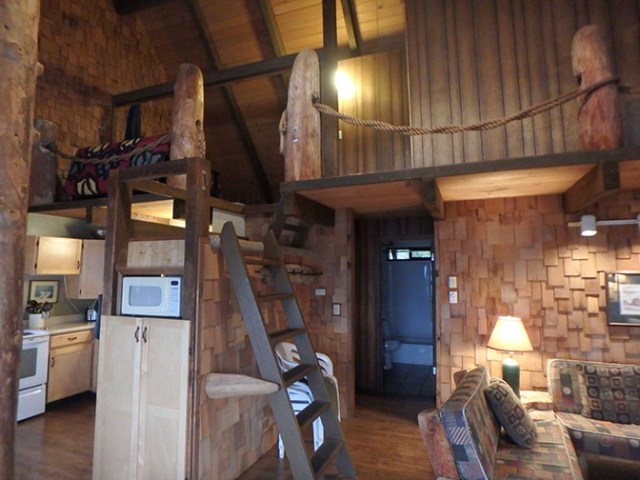 Although most people will never be able to stay there, it’s still fun to see the inside of some of these rustic cabins. Each one is different both inside and out. Local elements were integrated into the original decor and though some things have been updated over the decades since, things like driftwood furniture and sometimes stairways still remain.