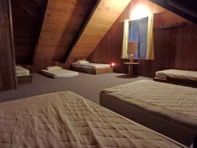 Cabin 8 is one of the larger ones that sleeps 10. It has 2 bedrooms and a loft with a bunch of mattresses on the floor.