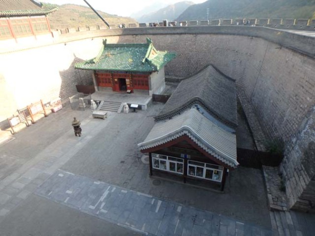 Our guide said there were no bathrooms on top of the wall, but apparently he had not gone up that side of the wall or at least not hiked it very far because after about a kilometer or so we came upon a building with toilet painted on the side of it. It may seem odd that it was written in English as well as Chinese, but a lot of the road signs were as well so seeing something written in English wasn’t that uncommon. They were of course the Chinese sort of squat toilets. It does make sense to have bathrooms there for the people who hike long stretches of the wall – or who run there. John’s Chinese aunt who lives in Beijing ran a marathon on the wall and it would be pretty tough to have a race somewhere with no facilities. Of course the soldiers of ancient times would have needed somewhere to go as well, though I have no idea if a restroom in this location was an original feature or an addition done during restoration. If it was original to the location it certainly would have looked far different in the past.