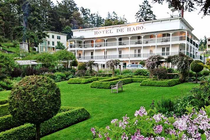 The resort was once the site of lime works and has other historical landmarks besides the hotel and lime kilns. There’s an old chapel, a pioneer cemetery and an old family mausoleum. There’s also a small village and some hiking trails. Kayak or whale watching tours are available at the marina. A sculpture park and the island’s only heated outdoor pool also reside in Roche Harbor. We stayed at Hotel de Haro once years ago when it had a much older look than in current internet photos. Back then the charming interior and furnishings looked old enough to be original to the place. That may not be the case any longer since there have been renovations between then and now. Even after remodeling most of the rooms still do not have private ensuite baths because back when it was built shared bathrooms were common in hotels. Despite having to walk down the hall for a bathroom it was a fun place to stay and the expansive grounds had lots of different things to explore.