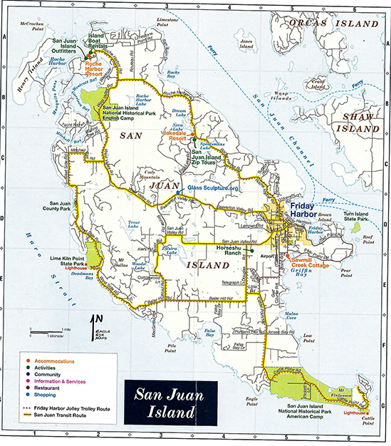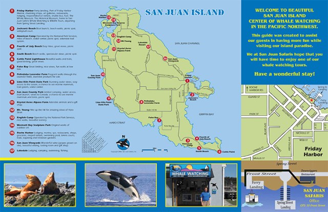 Most people arrive on San Juan Island by ferry into Friday Harbor, but there is so much more to the island than this charming town. At 621 square miles it is the second largest island in the San Juan Island chain. Only Orcas Island has more territory. San Juan Island is the most populous with a large portion of its over 6000 residents living in or near Friday Harbor, which is the county seat of San Juan County. Before the arrival of European settlers, native Americans inhabited the island and used it seasonally for salmon fishing. Tourism and government jobs have taken over from the more traditional jobs of early island residents who depended on fishing and farming. Computer jobs that allow people to work from home and live anywhere have contributed to a recent increase in the island’s population. As one of the 4 islands on the San Juan’s ferry route, San Juan Island is one of the easiest to visit. Places to stay include a resort, vacation rentals, and a campground. Friday Harbor has a large marina with transient moorage for those arriving by private boat. The island also has an airport for small planes within walking distance of Friday Harbor.