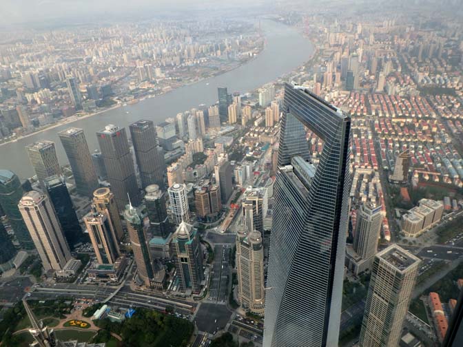 looking down on the Shanghai World Financial Center from the Shanghai Tower