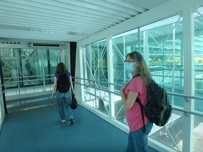 sisters on the gangway from the port building to the ship