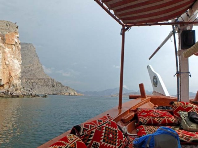 On the way back we made one more short fishing stop with no luck. There were still bananas on the boat, which were not used for bait. This was a great excursion, which made Khasab one of my favorite ports of the entire trip. It was quite relaxing sitting on the pillows on the deck and watching the scenery go by, and I’m always happy for a chance to go snorkeling.